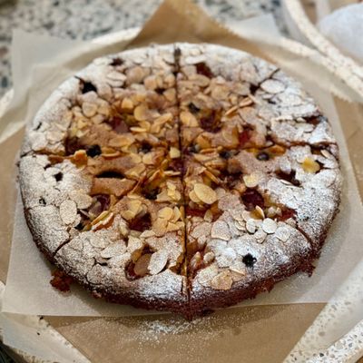 Almond and berry tart. Wheat Flourless. Contains dairy. Delicious! This is a gluten free friendly option. Whilst we try our best to offer gluten free friendly meals, we cannot safely claim to be celiac friendly.