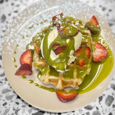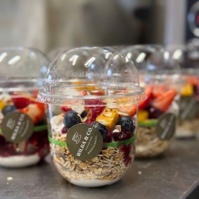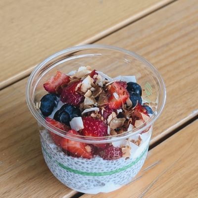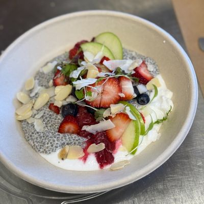 SOAKED CHIA SEEDS, COCONUT YOGHURT, BERRY COMPOTE, FRESH FRUIT, PURE MATCHA, TOASTED COCONUT FLAKES This is a gluten free friendly option. Whilst we try our best to offer gluten free friendly meals, we cannot safely claim to be celiac friendly.
