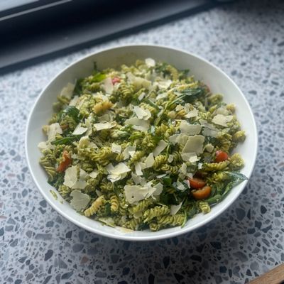 COLD SALAD BOX OF BASIL PESTO, AIOLI, PASTA, CHERRY TOMATOES, PARMESAN CHEESE, ROCKET CATERING BOX FEEDS 6-12 PEOPLE AVAILABLE AS ONE OR INDIVIDUALLY PACKED.