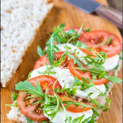 SLICED TOMATO, BASIL PESTO, AIOLI, ROCKET, MOZZARELLA CHEESE, BALSAMIC REDUCTION , OLIVE OIL