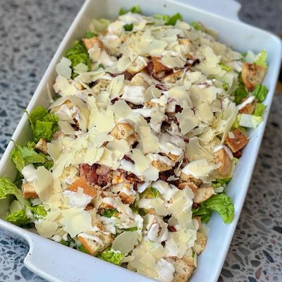 COS LETTUCE, BACON, POACHED EGG, PARMESAN CHEESE, ANCHOVY DRESSING, GLUTEN FREE FRIENDLY CROUTONS. CATERING BOX FEEDS 6-12 PEOPLE AVAILABLE AS ONE OR INDIVIDUALLY PACKED.