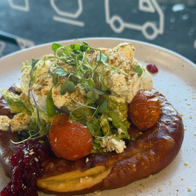 CHERRY TOMATO, FETTA CHEESE, BEETROOT RELISH, DUKKAH SPICE, AVOCADO, EGGS, BREAD CHOICE. BREAD CHOICE: SOURDOUGH, GLUTEN FREE BREAD, PRETZEL, CROISSANT