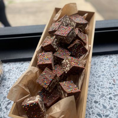A classic and all time favourite here at Wilba & Co. Hedgehog slice, made from a combination of chocolate & Marie cookies; topped with a layer of soft chocolate icing & sugar sprinkles. Does not contain egg.