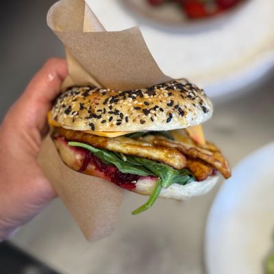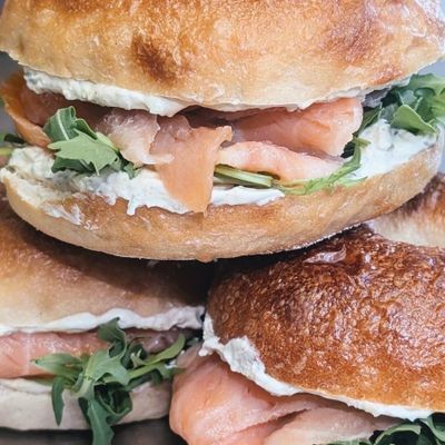 BUILD YOUR OWN SOURDOUGH BAGEL: CREAM CHEESE, SMOKED SALMON, AVOCADO, HALLOUMI