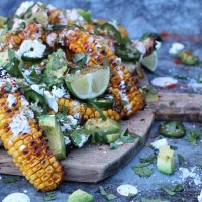 CRISPY CORN RIBS TOPPED WITH AVOCADO SALSA, FRESH CHILLI, HERBS, FETA CHEESE & CHIPOTLE AIOLI