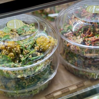 (Vegan) BUFFALO CAULIFLOWER POPCORN, CHICKPEAS, GREENS, TAHINI RANCH DRESSING, TOASTED SEEDS, JUST NEED TO ADD YOUR SALAD PROTEIN (GREAT WITH AVOCADO & HALLOUMI)