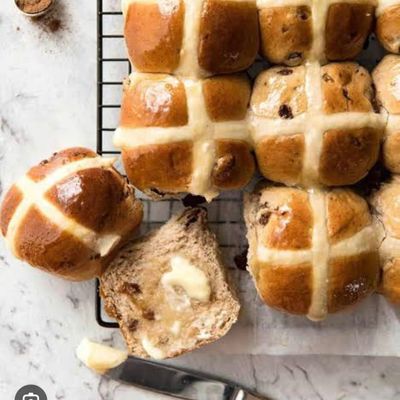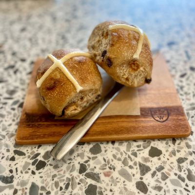 freshly baked EASTER BUN SMALL COFFEE, latte or long black
