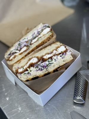 Gluten free flour friendly, hummingbird cake with a lemon cream icing. Contains eggs and dairy. Made with almond meal. This is a gluten free friendly option. Whilst we try our best to offer gluten free friendly meals, we cannot safely claim to be celiac friendly.