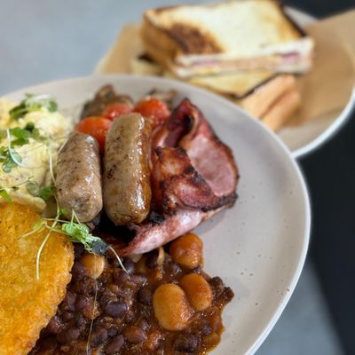 EGGS, TOAST, BACON, MUSHROOMS, TOMATO, CHORIZO, BEANS HASHBROWN BREAD CHOICE: SOURDOUGH, GLUTEN FREE BREAD, PRETZEL, CROISSANT EGG CHOICE: POACHED, SCRAMBLED, FRIED